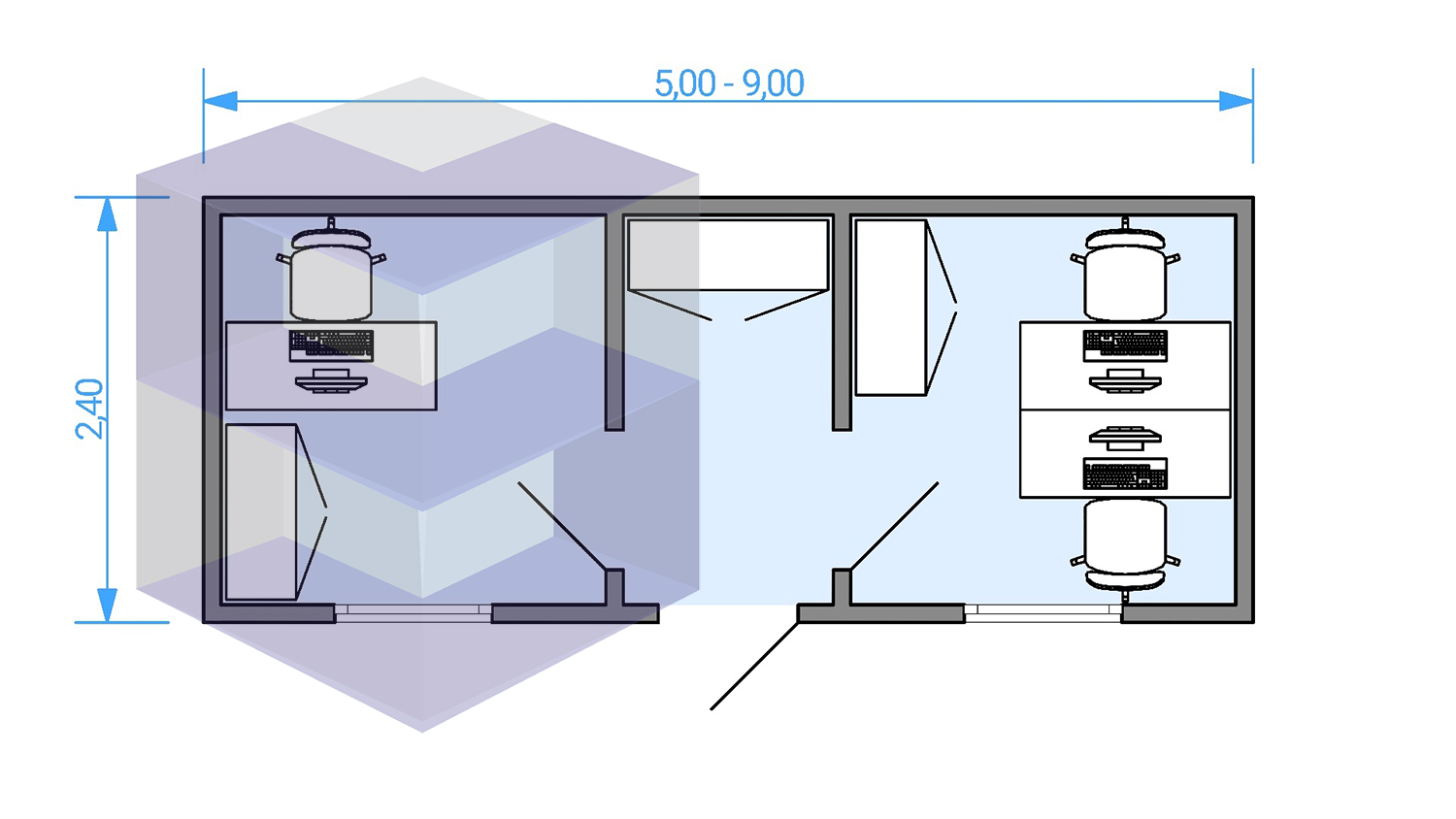 У нас можно приобрести готовые изделия или заказать персональный проект жилого блок-контейнера на 2 комнаты (прорабский) бк-5 в Смоленске и его реализацию с учетом индивидуальных условий. Мы используем проверенную модульную технологию и только сертифицированные материалы. На всю продукцию предоставляется гарантия 1 год.